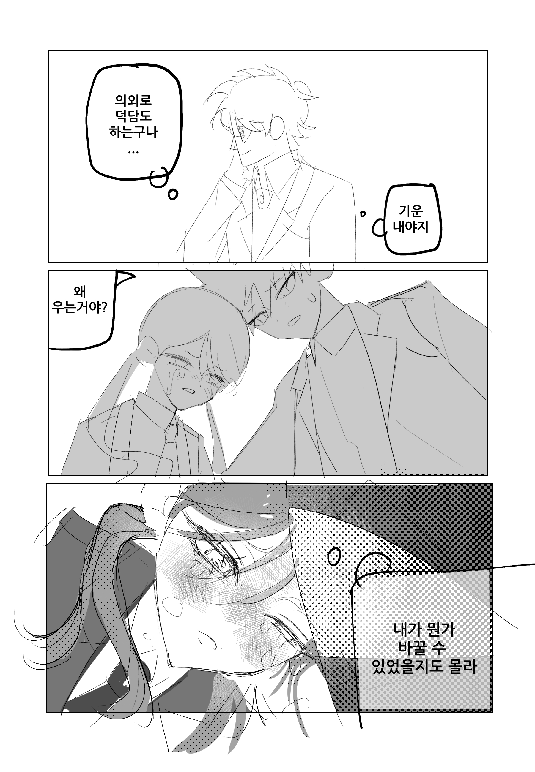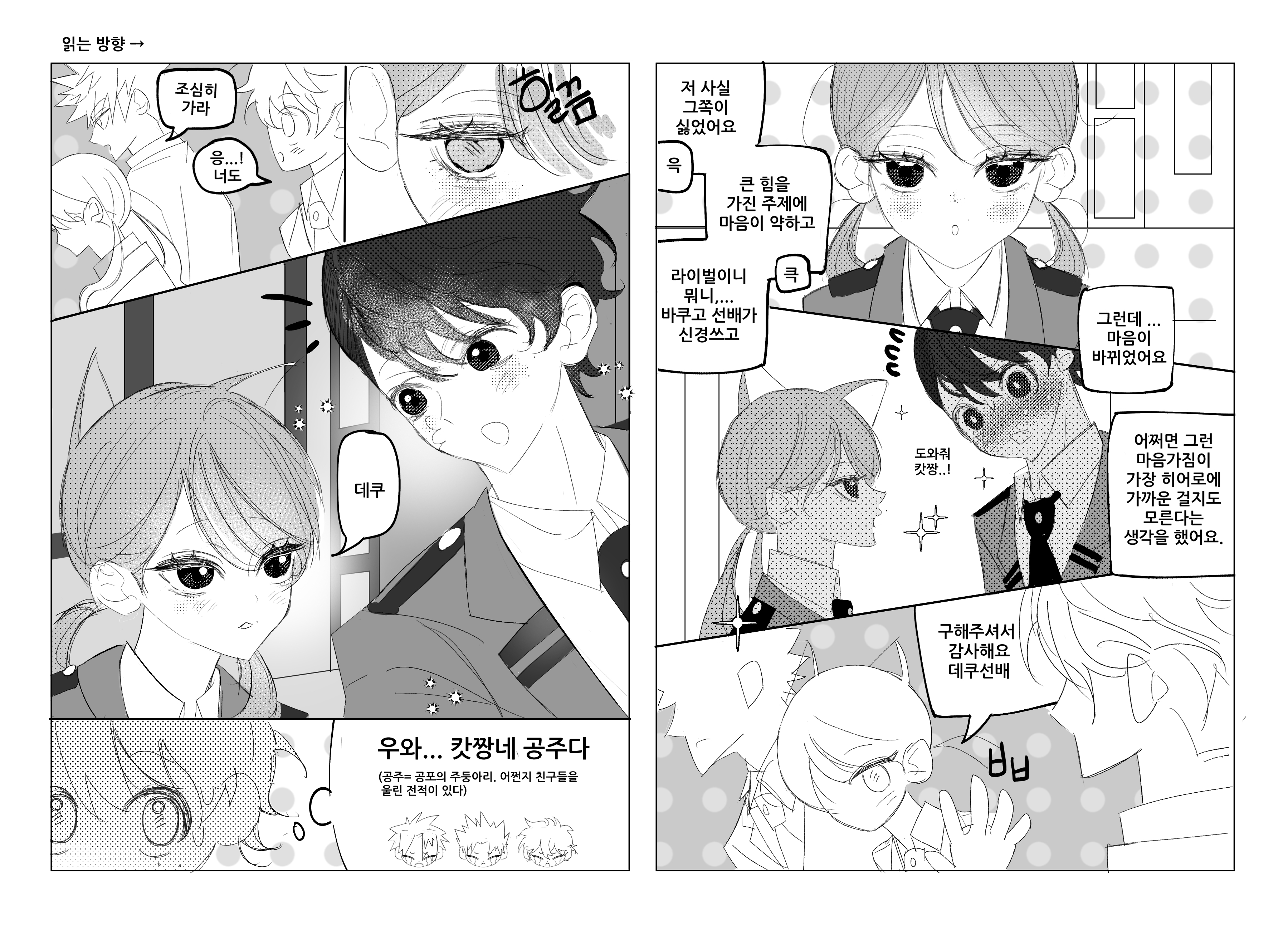 만약 자기가 시간을 한 번만 더 돌렸더라면 데쿠군이 저렇게 되지 않았을 거란 묘한 죄책감을 품고 있을 것 같다는 생각이 들어서 그려봤어요.